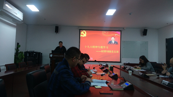 博15级党支部全体在校党员、预备党员和积极分子在新材料大楼第三会议室举行“学习、宣传和贯彻党的十九大精神”专题生活会。会议由支部书记吴亚科同志主持。