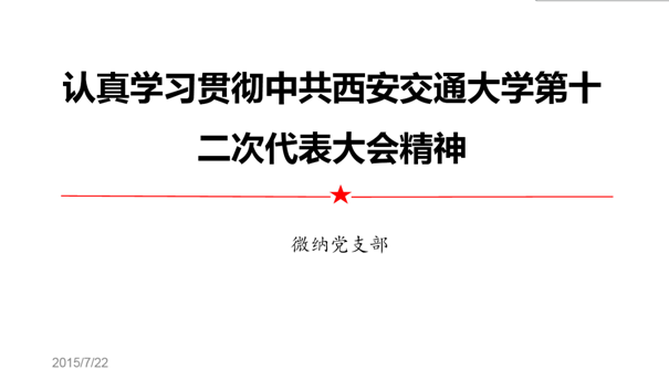 第十二次代表大会会议精神。党支部组织委员王晓光主持会议,并就第十二次代表大会精神、“三严三实”专题学习及习近平总书记《与北京师范大学师生代表座谈时的讲话》等讨论话题做了主题报告。与会同志们积极讨论,深入交流彼此的观点。