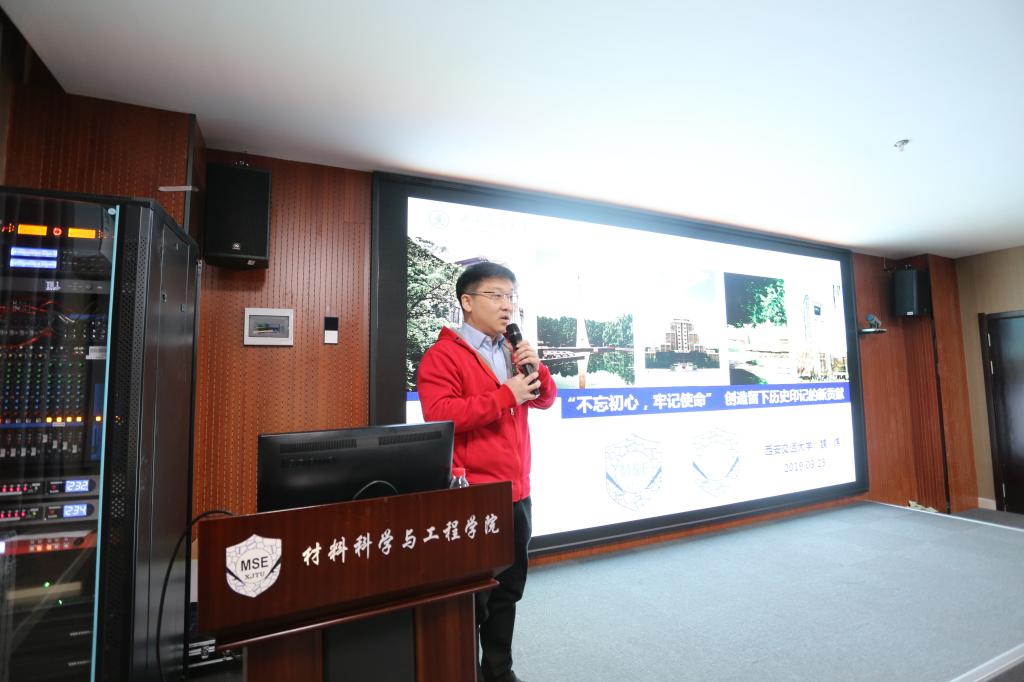 党委副书记魏炜,以“不忘初心、牢记使命,创造留下历史印记的新贡献”为主题,以高校的党建是什么、怎么做为切入点,从基层党建现状、思想交大、双院制育人、创新港等十个方面详细讲述了学院党建工作。他指出党支部书记、支委等要发挥带头作用,积极围绕实现材料学科跨越式发展、入驻创新港等核心工作,用习近平新时代中国特色社会主义思想铸魂育人,贯彻落实立德树人根本任务,以“四种文化”、“四面旗帜”为引领,奋力奔跑,为学校腾飞贡献材料人的力量和智慧,创造带有 牵手
