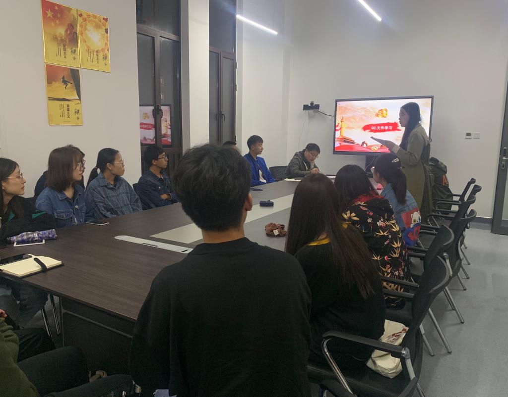 9月17日晚, 硕9021党支部在创新港3-2053会议室召开研究院第一次新生党组织生活会,全体新生党员、部分积极分子、党委副书记魏炜及辅导员王恺悦参会。在简单的自我介绍后,辅导员带领大家学习了《中共牵手