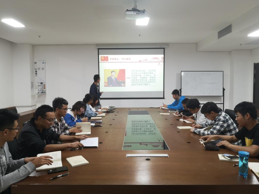 王普强同志首先向全体支部成员阐述了自己对“初心”与“使命”、“历程”与“胸怀”的理解:初心来自于历程,使命源自于胸怀。不忘初心,背负起责任与担当,才能牢记自己的使命;在奋斗历程中不断总结反思,才能培养更广阔的胸怀。只有坚持正确的奋斗方向、坚持正确的信仰、并付诸于坚持不懈的努力,在日常生活以及分内工作中脚踏实地、务实求真,在思想上绝对自律、总结反思,制定合理的计划安排,采用高效的工作方法,才能最终不辜负自己所肩负的责任,实现自己的人生理想。