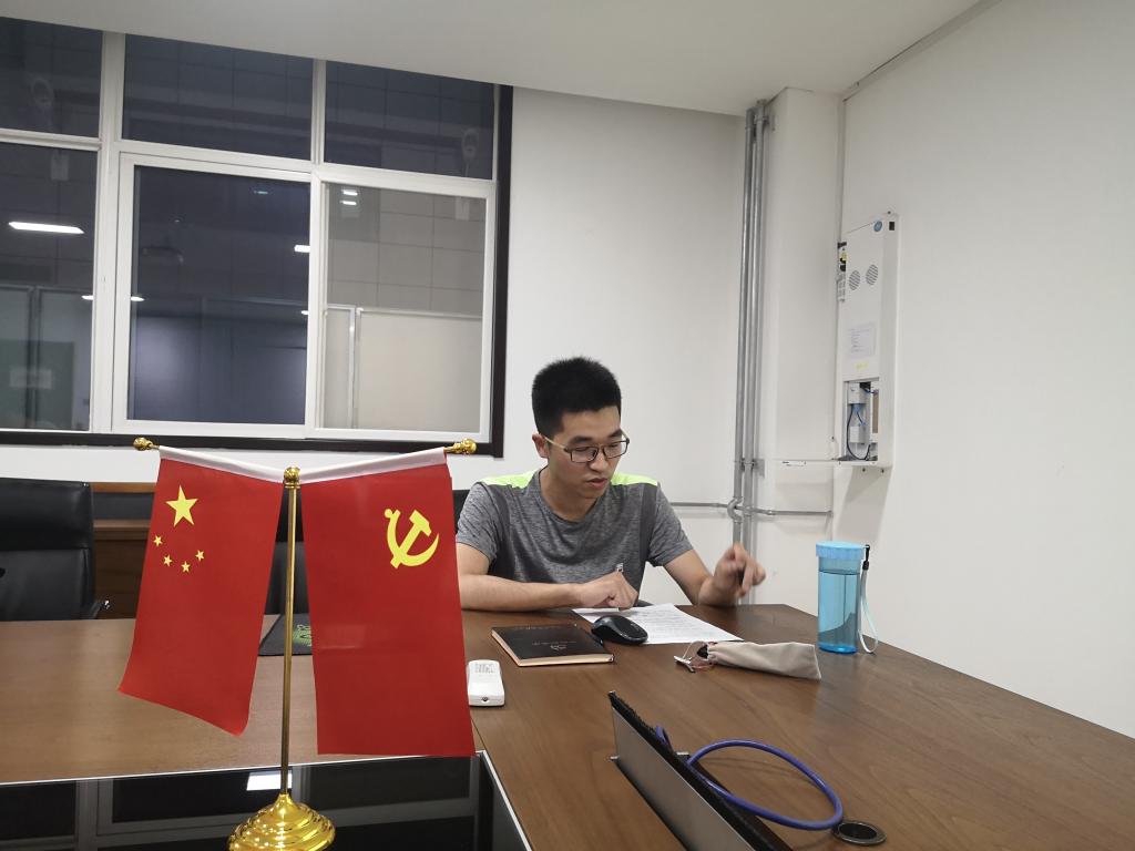 会议的第二部分,全体党员同志轮流分享了自己在疫情期间所见所闻的抗疫故事。王来成同志作为社区的防疫志愿者,向大家讲述了自己在志愿服务期间宣传防护知识,做好社区出入人员筛查登记的经历,和社区居民同心同力,共同应对疫情。李臻同志分享了一位抗疫物资运输司机的故事,面对记者的采访,司机“没钱可以出力”朴实的回答,触动了无数大众的心,正是这样平凡的善良,这些在一线默默付出的普通的工作者,筑成了疫情防护第一道坚固的防线。牛强同志分享了交大附属医院医生驰援武汉的光辉事迹,在疫情最严重的时刻,党员能够主动承担起责任,这正体现了中国共产党人身上“忠诚为民”的奉献精神。