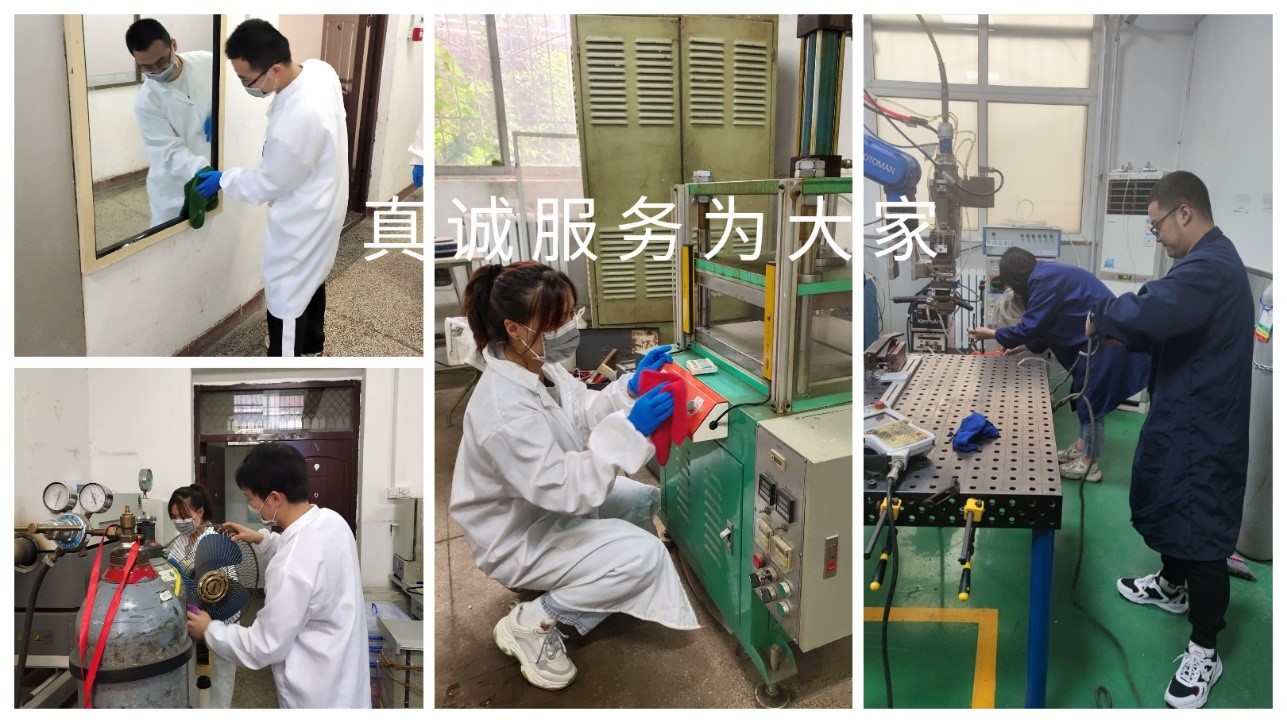 结合工作实际,从最现实的利益出发,认真研讨了“我为师生办实事”活动方案,旨在用心用情用力解决师生的烦心事。了解到实验室使用率高,一部分仪器、设备呈现老旧等状况。采取空余时间对焊接实验室老旧设备进行除尘、保养维护,安全隐患排查等工作。焊接师生联合党支部于5月21日下午在焊接所开展实践活动。前期根据实验室的使用情况对大家负责区域进行合理分配,实现清单式管理,明确工作内容。在活动过程中,合理划分实验区和办公区域并对实验室的仪器柜、实验台、工具柜、防尘罩等进行清洁和规整;排查了水、电、气路是否存在安全隐患等问题。开展具体工作,做到不遗漏,不留死角,实验物品堆放有序,物品摆放整齐,室内布置规范,提示标牌完好。大家分工明确,规范操作,具备良好的实验室安全意识。