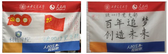刘朋帅和王士峰同学共15人组成3支团队。活动伊始,各团队紧密围绕建党百年华诞主题,发挥想象力,齐心协力设计了各具风格的队旗。
