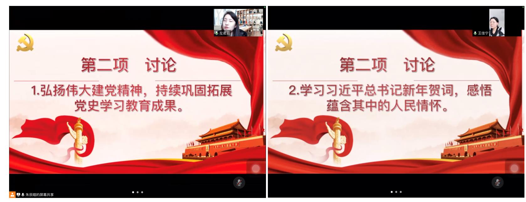 支部成员围绕弘扬伟大建党精神、学习习近平总书记新年贺词、理解把握伟大抗疫精神、学习相关法律法规四个主题纷纷发表自己的看法与体会。