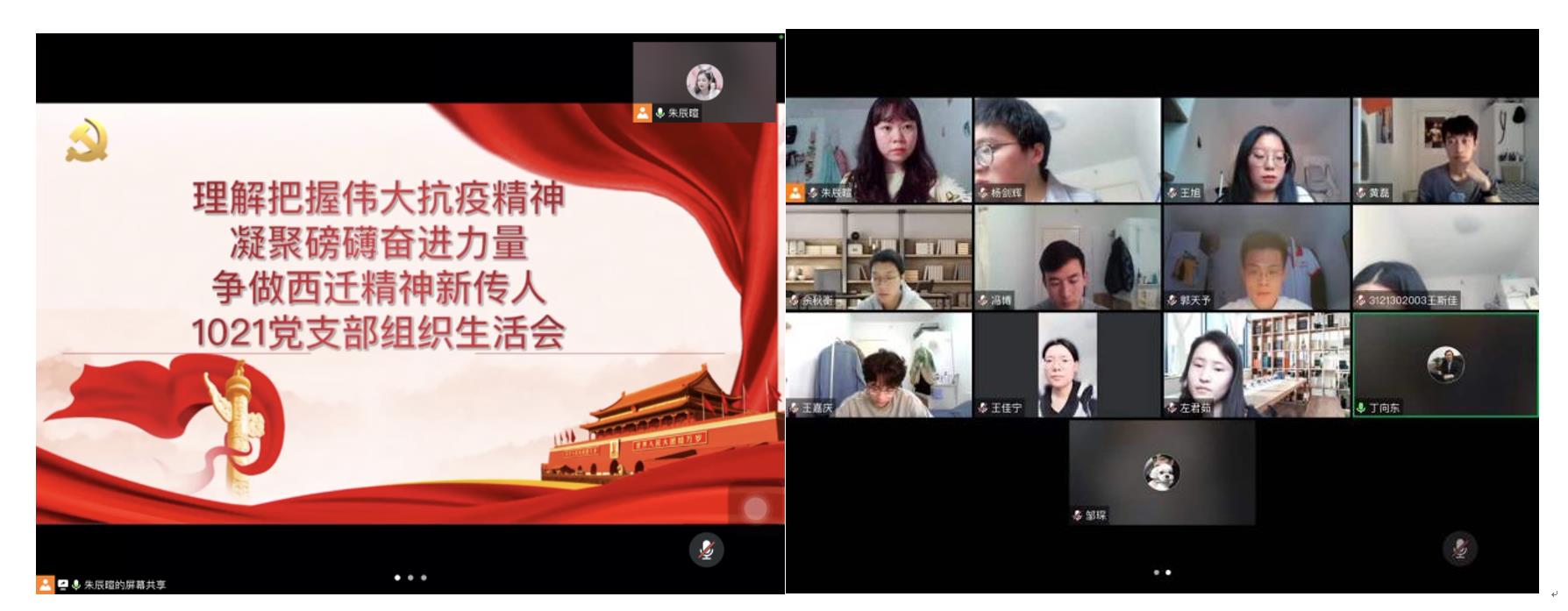 为深入贯彻落实习近平总书记重要指示批示精神和党中央、教育部及学校党委关于疫情防控工作的决策部署,持续巩固拓展党史学习教育成果,充分发挥党支部战斗堡垒作用和党员先锋模范作用,2022年1月16日,硕1021党支部线上开展以“理解把握伟大抗疫精神,凝聚磅礴奋进力量,争做西迁精神新传人”为主题的组织生活会议。学院党委委员丁向东同志及支部全体党员参加本次会议。会议由硕1021党支部副书记朱辰暄同志主持。