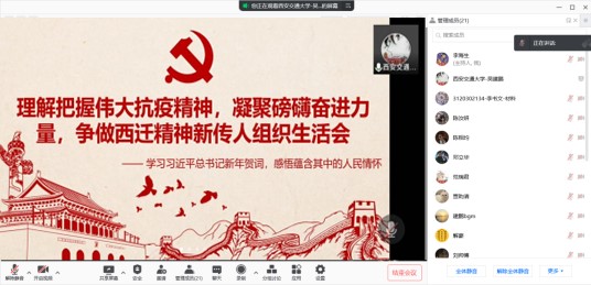 S0023党支部召开了以“学习习近平总书记新年贺词,感悟蕴含其中的人民情怀”为主题的线上组织生活会议,S0023党支部党员及积极分子共计20人参加本次会议,会议由吴建鹏同志主持, 牵手