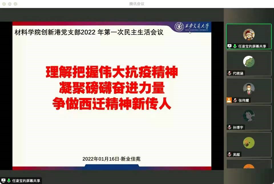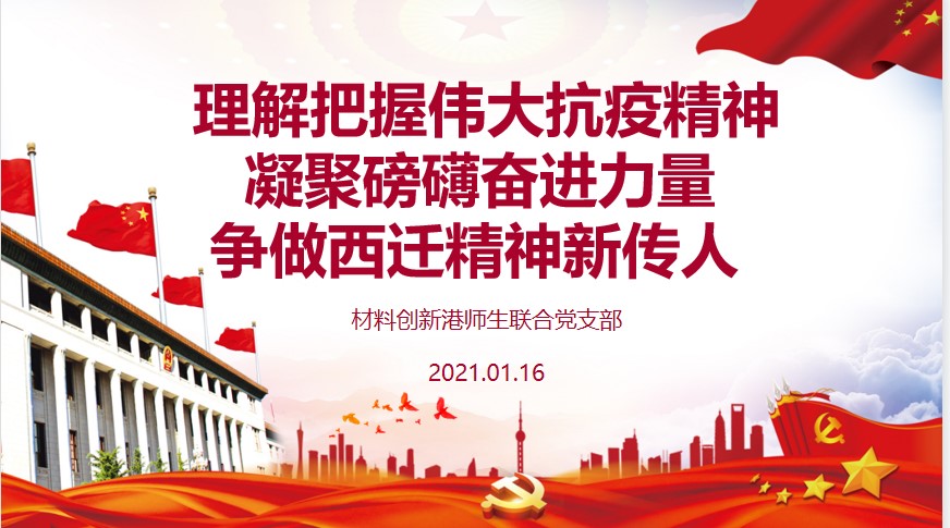 创新港党支部于2022年1月16日召开了“理解把握伟大抗精神、凝聚磅礴奋进力量争做西迁精神新传人”为主题的线上组织生活会议。会议由支部书记张伟耀同志主持,创新港党支部成员悉数参加。 牵手