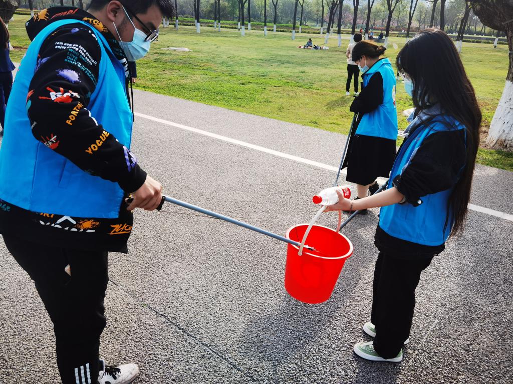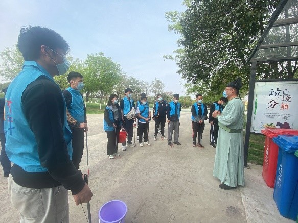 大明宫遗址是中国保存最为完整的皇家宫殿遗址,在中国历史发展的文物序列上占有不可替代的地位,也被称为“中国宫殿建筑的巅峰之作”。此次志愿活动受到了大明宫国家遗址公园相关负责人的积极协助,大家首先在模拟沙盘中了解自己的志愿者服务点,随后至玄武门广场集合,将玄武门广场至太液池环池路的垃圾进行捡拾。同学们各个干劲十足,不放过每一个垃圾,认真的清扫着目光所及的每一寸土地。