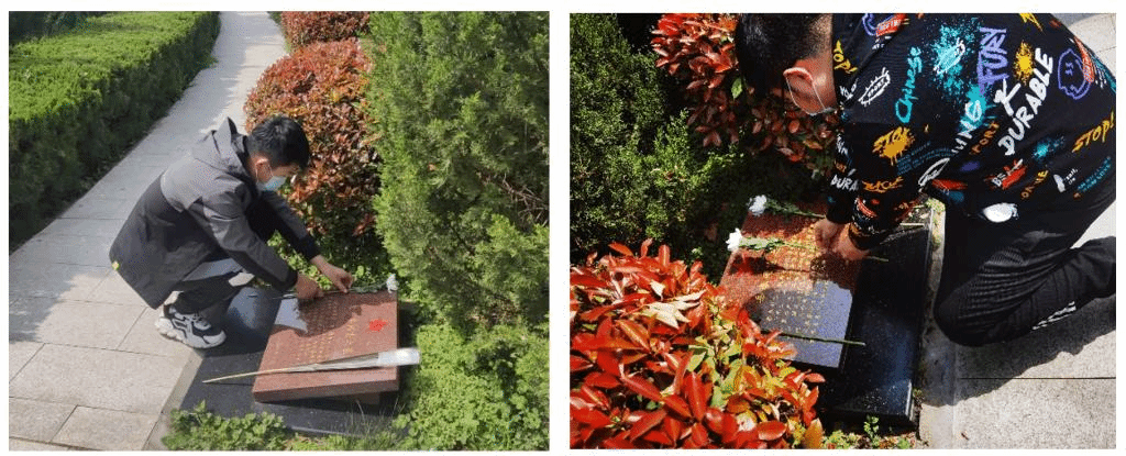进入陵园,毛主席“人民英雄永垂不朽”的牌匾题字为此次的祭扫活动增添了些许庄重的氛围。同学们自发对陵园内的落叶,杂草等进行清扫,并有序地在陵园的各个角落搜寻残留在地面上的杂物。骄阳下的他们怀着对革命先烈们最崇高的敬意,为他们打扫出一片最净沃的栖息地。支部成员自发在革命烈士们的墓前默哀一分钟并献花。虽然不曾亲眼目睹烈士们在战场上的雄姿,不曾记得烈士们的名字,但他们永远活在每个人的心里,是当之无愧的英雄和楷模。