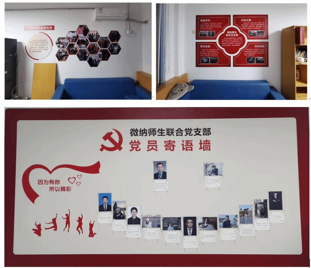 “党员之家”是支部党员学习交流的固定场所,对凝聚支部力量,增进党员交流学习起到非常重要的作用。微纳师生联合党支部委员在韩卫忠书记的指导下,将闲置的休息室建设成 “党员之家”,配备休息座椅、饮水机等基本设施,为支部党员学习交流提供良好的环境。在强度楼二楼和三楼的休息室共制作宣传展板五块,内容涵盖了党的宗旨、支部架构、优秀党员以及定期更新的支部生活等,使微纳中心师生可以全方位地了解支部发展与近况。
