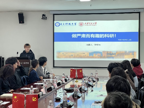 在双方学生主题分享交流环节。支部党员杨韬樾同志作为牵手