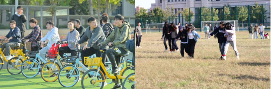 在各项比赛中,本团支部同学们展现出了极高的热情和活力,竞争激烈而又不失友好。“三人两足”中,队员们默契配合,传递着速度与激情;“乒乓球接力”则体现了团队的力量与协作;“懒惰自行车”不仅考验了同学们的平衡能力,更是笑声不断,将运动会的气氛推向了高潮。