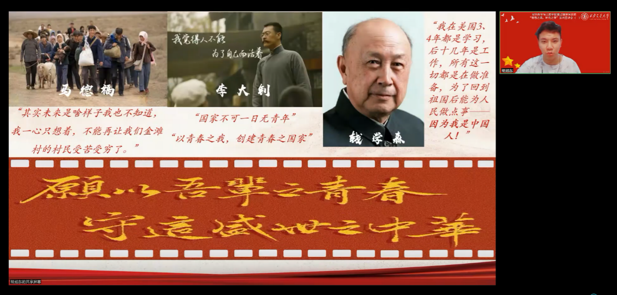 的爱国传统和西迁精神,鼓励着新时代青年学生投身科研、参与志愿活动和社会实践,为实现中国梦贡献力量。张宇轩同学通过对比战争与和平,历史与现实,深刻地传达了爱国情怀和责任担当。它激励我们珍惜和平,铭记历史,积极投身于国家的发展和进步中,用实际行动为实现中国梦贡献自己的一份力量。