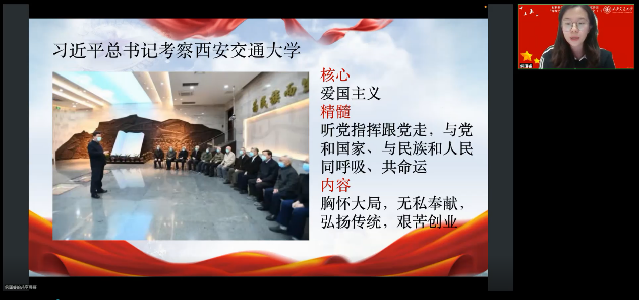 扎根西部、服务国家、向建设世界一流大学迈进的稳健步伐。沉浸在西迁人奋斗的故事里,同学们深深体会到“西迁精神”的“胸怀大局,无私奉献,弘扬传统,艰苦创业”精神内核。