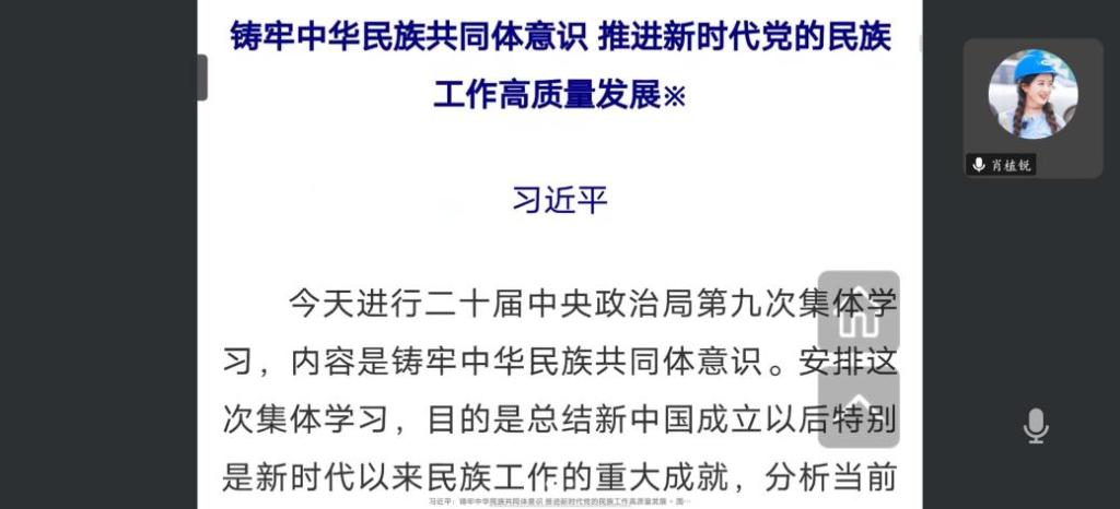 10月22日,S5026支部开展线上领学活动。李鹏杰同学和咸明杰同学分别围绕习近平总书记在西藏视察时的重要讲话精神、习近平总书记在纪念中国人民抗日战争暨世界反法西斯战争胜利80周年大会上的讲话等内容,进行专题领学,强调党员应铸牢中华民族共同体意识,胸怀“国之大者”,发挥引领作用。