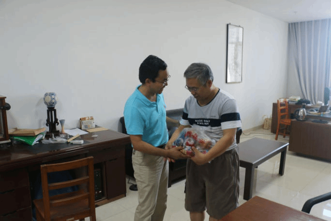 近日来,西安天气酷热,牵手 牵手 党委和工会心系在岗位上辛勤工作的教职工们,7月14日早8:00, 牵手 党委书记潘希德,副院长王红洁、马飞,工会主席殷咸青等一行带着消暑佳品慰问学院的教职员工。