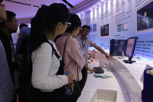 同学们来到科研成果展示厅,认真聆听专业人员讲解光机所科研成果和产业化布局。通过工作人员的介绍,我们了解到,光机所自1962年创立以来,屡次肩负国家重大战略科技任务,包括“两弹一星”工程中对原子弹爆炸瞬态的图像采集、探月工程中对月高分辨摄像、玉兔号“眼睛”的全景摄像,以及制造载人航天工程中应对高温差、大振动等严苛条件下的航外摄像机。