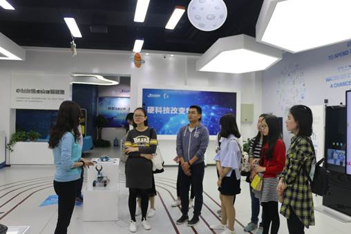 最后同学们来到中科创星硬科技创业投资孵化平台,这是一个为有创新想法的年轻人提供资金、设备、市场以及法律指导等多项支持的创业基地,。大家认真聆听讲解,都被深深吸引。