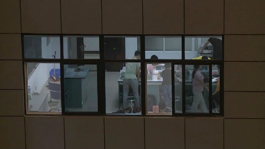 材料科研与基础学科大楼里的师生们都在忙碌着。