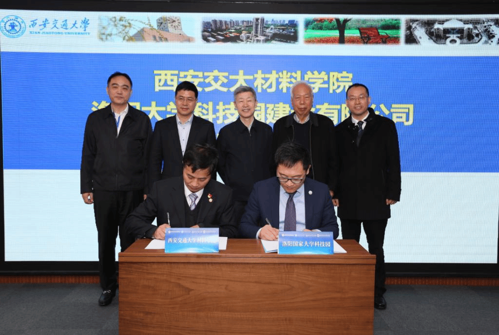 党委书记潘希德和洛阳国家大学科技园总经理孙少波签署了牵手