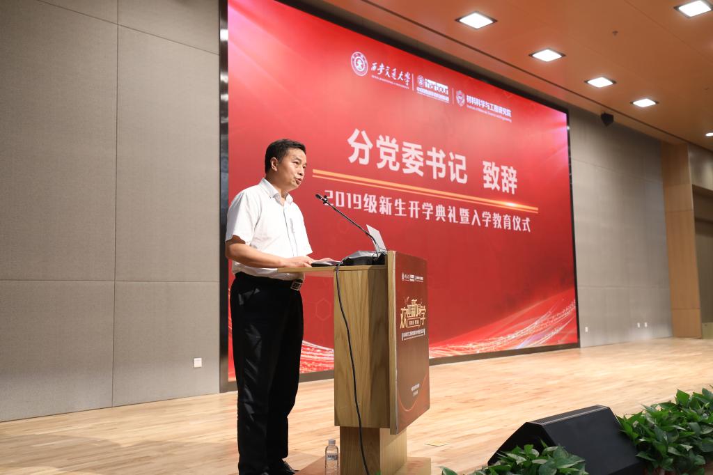 潘希德书记对各位新生们表示热烈欢迎,祝贺大家成为创新港第一批主人。他表示,大家要永葆一颗求知心,俯下身学习专业技能和前沿知识;要做诚实的学问、做正直之人,立德立言,方能驰骋久远;要满怀敬畏之心,遵守规章制度,时刻维护集体荣誉;要有担当意识,克服困难,与交大发展同频共振,以科技报国为己任,在创新港留下美好的回忆和不平凡的印记。