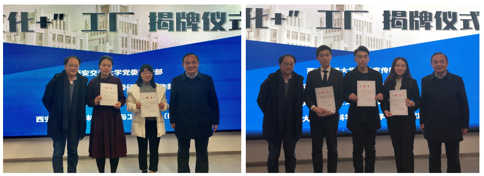 联合组建的“文化+”工厂正式成立,张迈曾书记、王树国校长为其揭牌,党委常委、组织部部长柴渭,宣传部部长成进为“文化+”工厂指导教师、学生负责人颁发聘书。