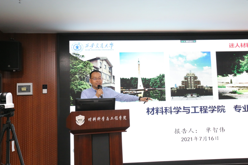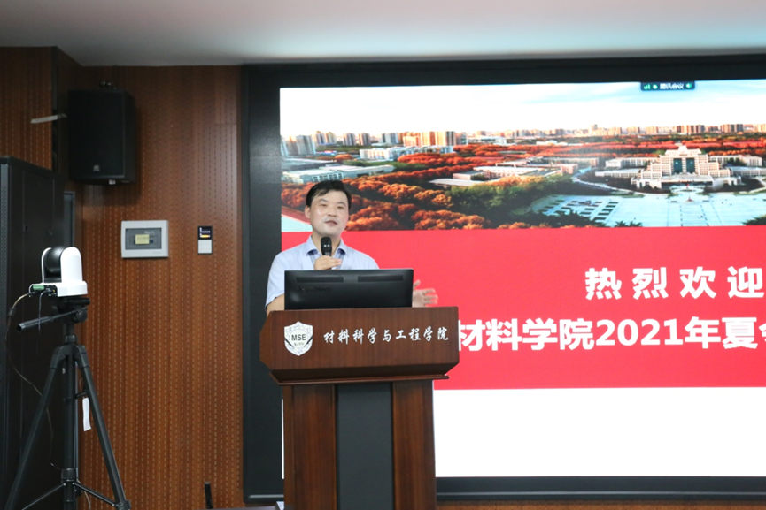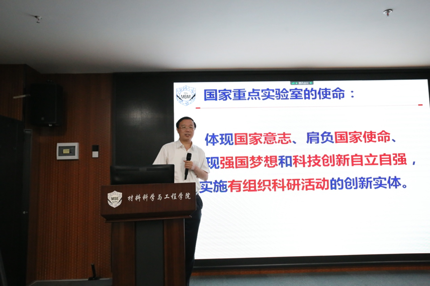 历史沿革、师资力量、承担重要科研项目、科研成果、学术论坛、学生培养特色等方面系统全面地介绍了学院的基本情况。他强调研究生要以解决国家科技难题为目标,在浮躁的世界凝神聚气,夯实材料学科发展基础,为材料学科未来发展贡献力量。