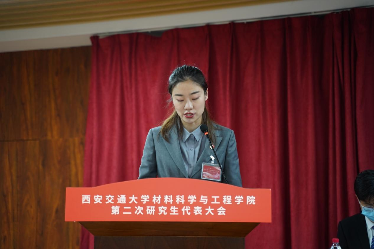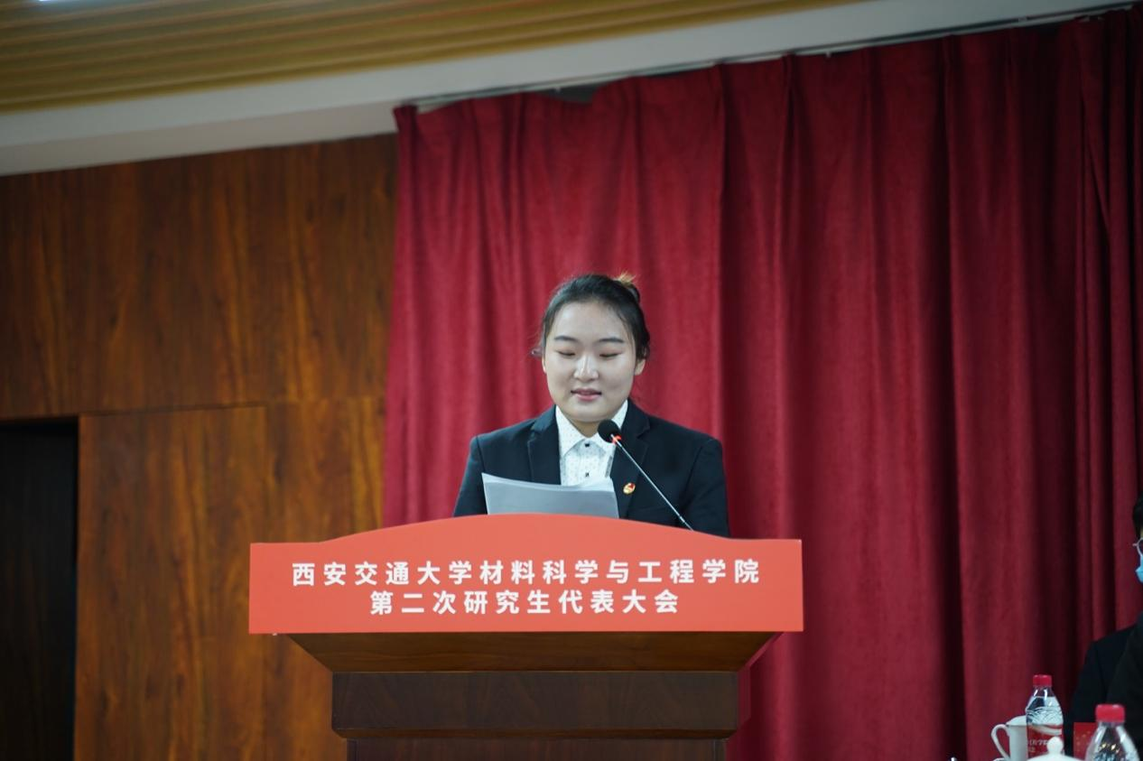 2020-2021学年研究生会主席团成员李晶作了主题为“坚持立德树人 凝聚青年力量 服务发展大局”的工作报告。她全面、系统总结了自2020年换届大会以来 牵手
