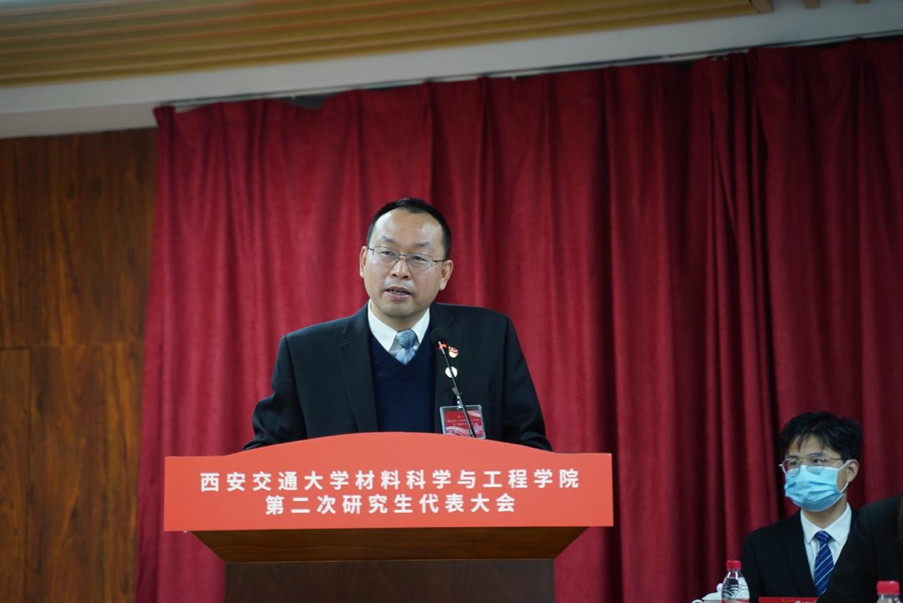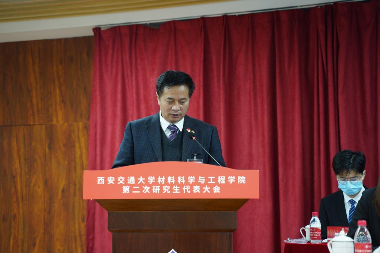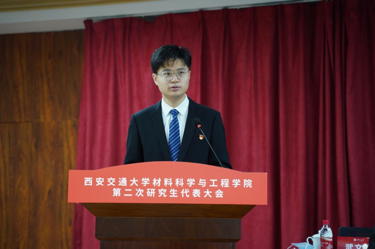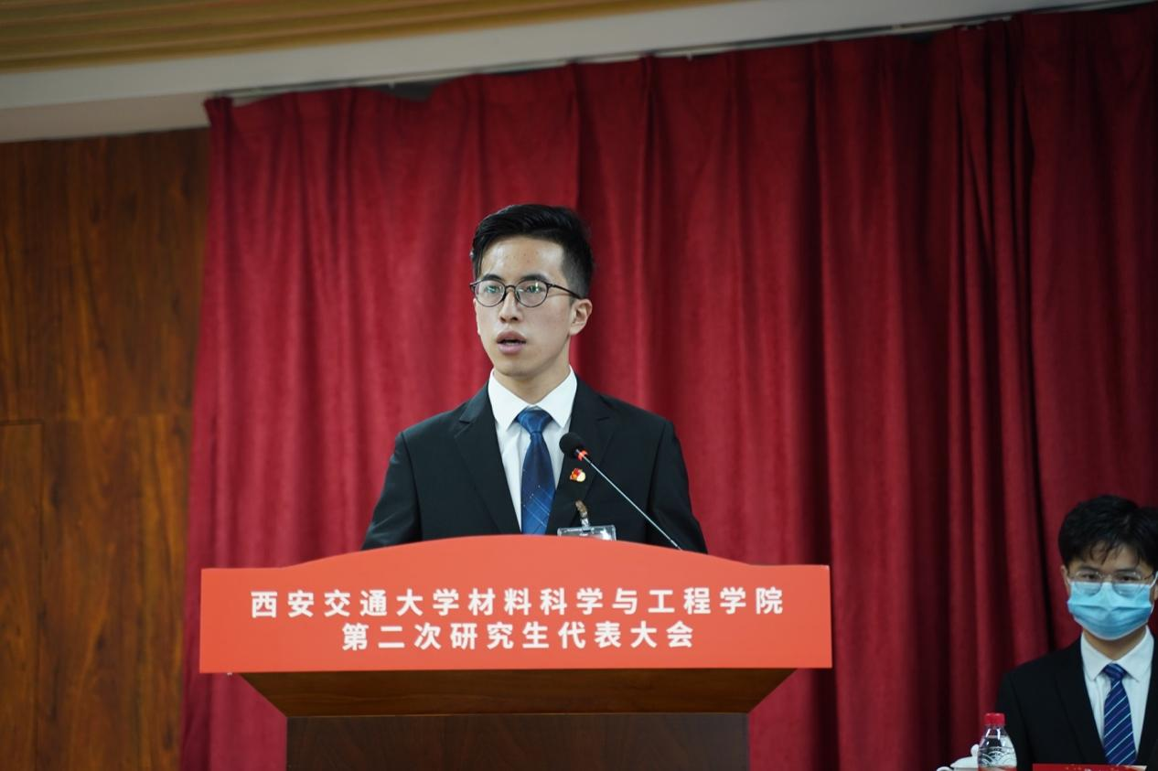 潘希德书记在致辞中表示,本次大会是在创新港校区召开的第二次研究生代表大会,是材料青年学子政治生活中的一件大事,也是学院凝心聚力开创研究生工作新局面的一次青年盛会,对全院师生落实学校“十四五”发展规划目标、加快一流学科建设具有重要意义。大会不仅为同学们提供了提出有利于学院发展、有利于研究生成长的建议的机会,更能统一大家的思想,将更多的力量凝聚到 牵手