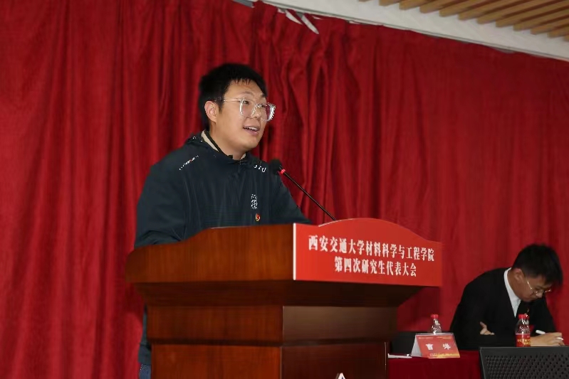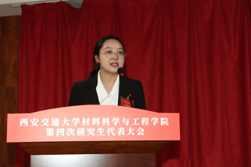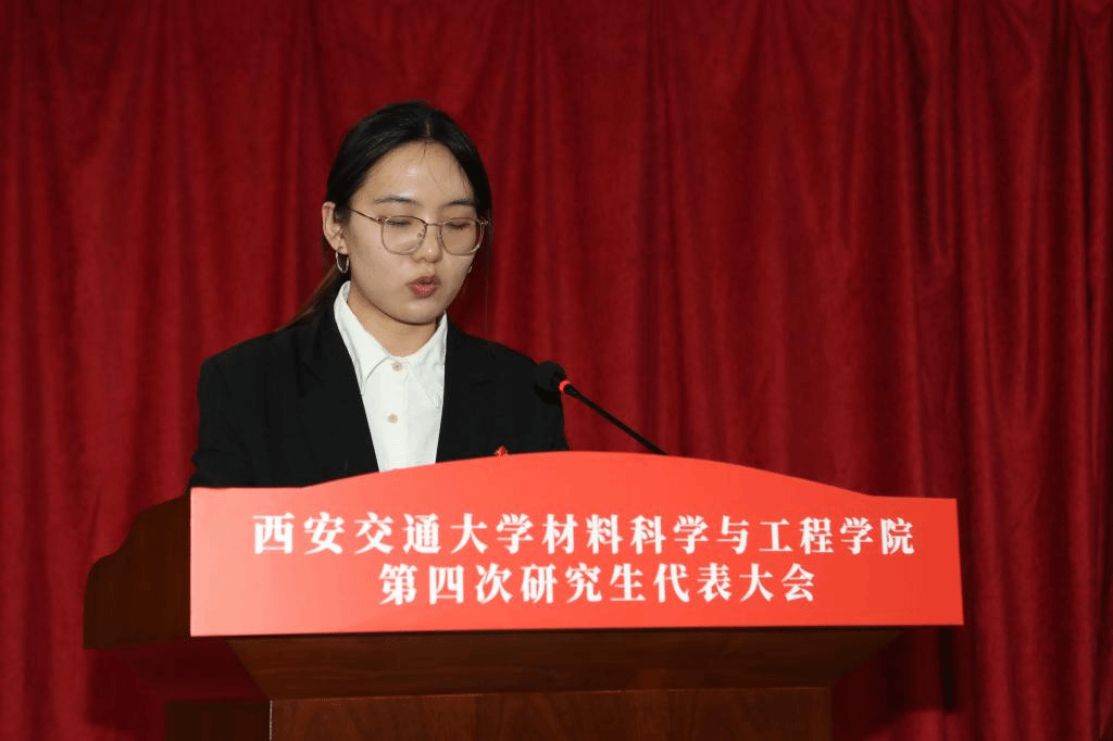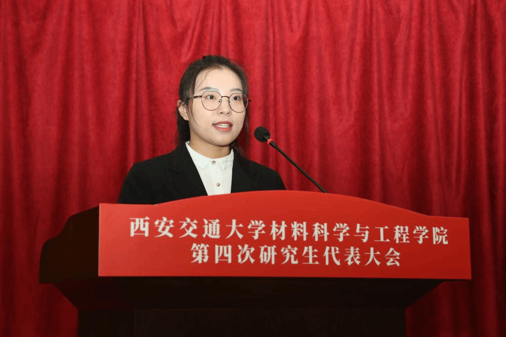 党委书记高宏在致辞中表示,本次研究生代表大会是学院凝心聚力开创研究生工作新局面的一次青年盛会,对学院进入高质量特色发展的新征程具有重要意义。同时她对研究生代表及同学提出了三点希望:一是希望同学们争做西迁精神的新传人,牢记习近平总书记的殷切嘱托,在求知的路上不断开拓进取,树立远大理想抱负;二是希望同学们胸怀国之大者,担负历史使命,将“卡脖子”问题视为挑战和机遇,立足科技前沿,为实现高水平科技自立自强做出应有的贡献;三是希望研究生代表发挥桥梁纽带作用,参与学院治理与监督,服务研究生成才成长,希望研究生会的工作体现材料人的专业与专长,展现 牵手