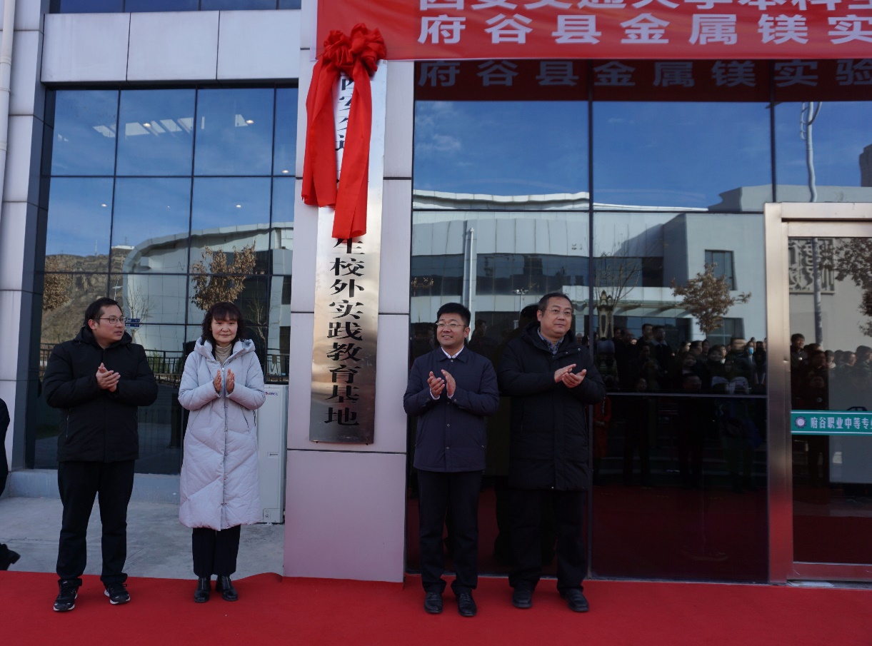 本科生校外实践教育基地挂牌暨府谷县金属镁实验实训基地落成仪式在府谷县职业中等专业学校举行,该基地是全国唯一的金属镁人才专业培训基地,也是职教融合示范工程,标志着牵手