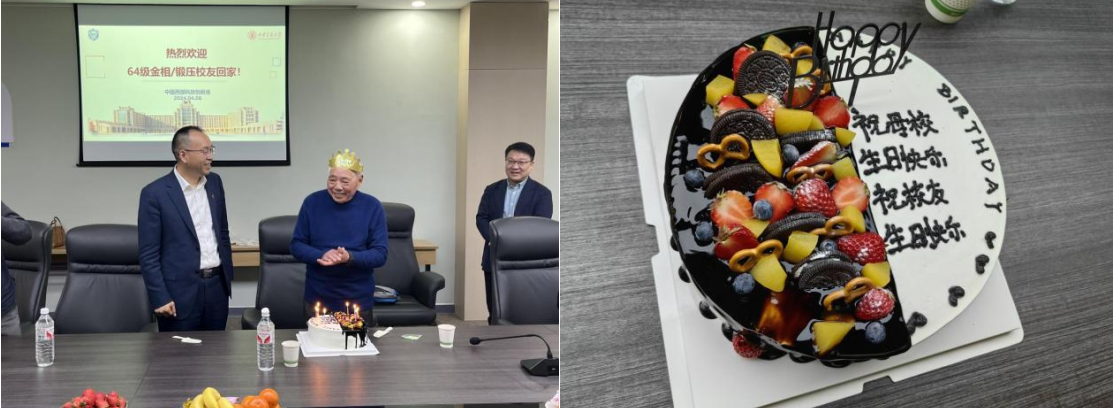 副校长单智伟、校友发展部副主任赵力在创新港材料研究院亲切会见了校友们。他代表学校向远道而来的校友们致以崇高的敬意和衷心的感谢,感谢他们一直以来对母校的关心和支持。他提到,校友们是母校发展史上的重要一页,他们的奋斗精神和卓越成就为母校增添了无尽的荣耀,是母校最宝贵的财富,是母校发展的重要力量。恰逢当日与母校同一天生日的鲍汉云校友迎来了他的寿辰,在场教师为鲍汉云校友过寿庆生,大家共同为校友送上祝福,现场气氛温馨而感人。