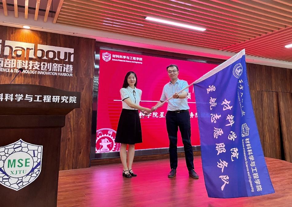 星航志愿者服务队的成立仪式顺利举行,材料学子们将在实际工作中充分锻炼能力,胸怀国之大者、弘扬西迁精神,加强服务意识,成长为“有理想,敢担当,能吃苦,肯奋斗”的新时代好青年,为推进学校和学院建设贡献青春智慧和力量!