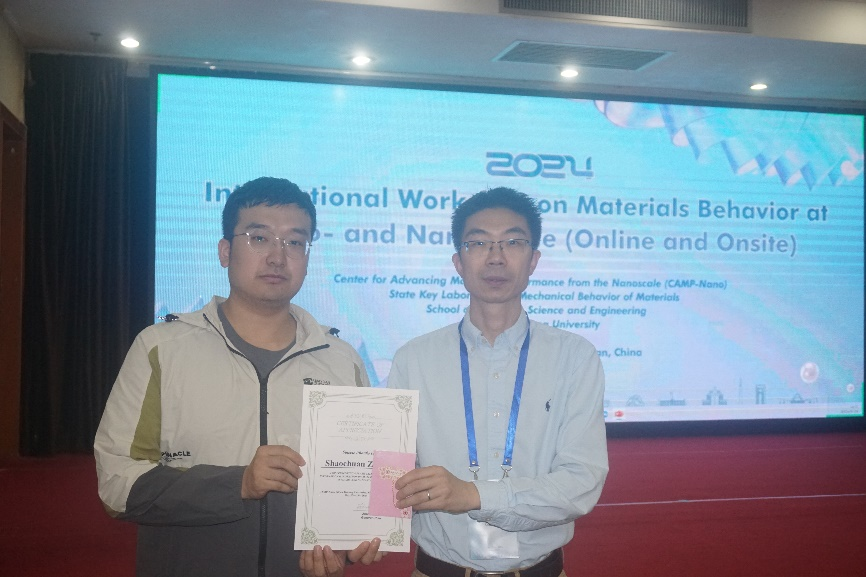 等高校的6位同学从下午的“闪报”环节中脱颖而出,由陆洋教授、张利强教授和刘博宇教授给各位获奖者进行了颁奖。在场的老师与获奖同学合影留念。至此,本次学术会议圆满结束。微纳尺度材料性能国际研讨会通过系列学术交流,加强了微纳尺度材料研究领域的国际合作与交流,立足“双一流”与创新港建设,为进一步提升 牵手