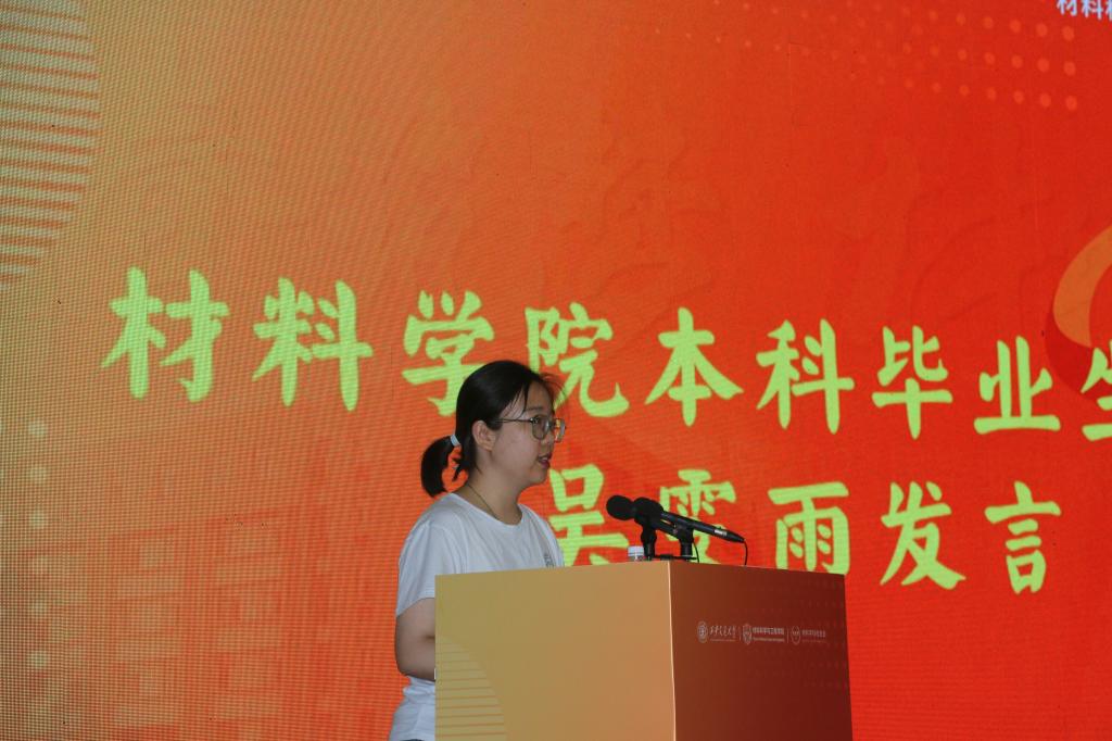 本科毕业生代表吴雯雨、硕士毕业生代表赵思佳在发言中表达了对老师、工作人员和父母的感激之情,并感谢学校和学院为广大学子提供了施展才华的平台,使他们成长为更好的自己。她们回忆了在校时光,并表示这些难忘的经历为未来的奋斗提供了无限的动力,希望大家在未来能够更自信、更坚定地面对挑战、追求理想,始终铭记责任,勇于担当,在国家发展建设的广阔舞台上传承和弘扬西迁精神,为全面建设社会主义现代化国家贡献青春力量。