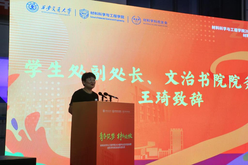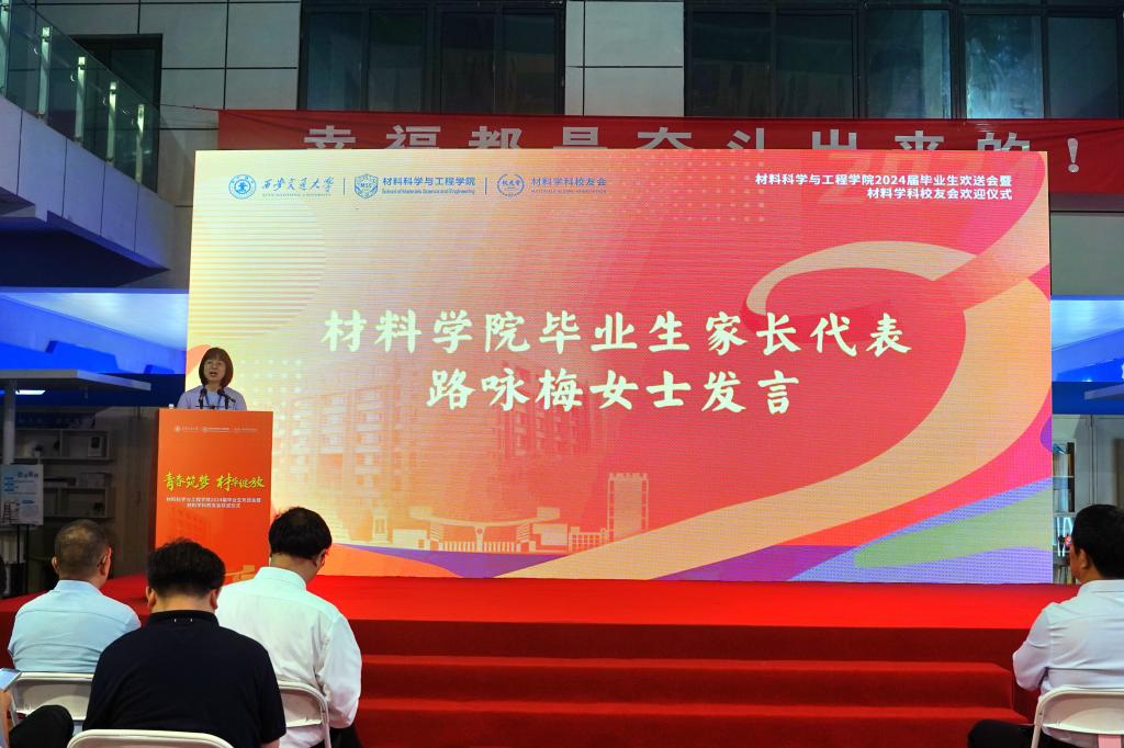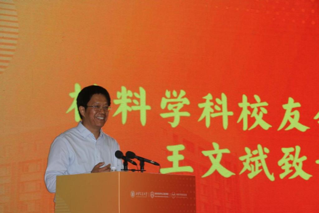 材料学科校友会会长、陕西斯瑞新材料股份有限公司董事长王文斌欢迎毕业生们加入材料学科校友会,并向同学们介绍了材料学科校友会的发展历史和成就。他希望同学们正确认识社会变化,沉着应对新的考验,通过分享自身工作和创业经历,建议大家正确认识自己,早日确定发展方向并坚定地走下去,肩负责任,勇敢前行,为国家和社会发展贡献力量。