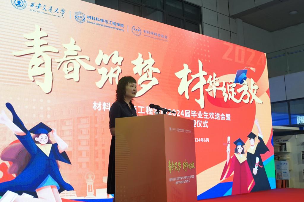 党委书记高宏代表学院向圆满完成学业的同学们表示热烈的祝贺,希望大家牢记习近平总书记的嘱托,弘扬西迁精神,在新时代创造属于青年人的历史功绩,并对毕业生提出了几点期望:第一,不要放弃追求,要将自己融入国家的发展洪流之中,对标国家发展需要,立足岗位,要体现“材料”的价值;第二,不要忘记责任,服务社会,服务国家,服务人民是同学们今后承担的重要责任,要以西迁前辈为榜样,在实现伟大的中国梦征途中厚植家国情怀,牢记使命担当,要有“材料的强度”;第三,不要惧怕挑战,要保持乐观的心态和拼搏精神,以不屈不挠的意志战胜一切困难,要有“材料的刚性”;第四,不要停滞完善,在步入社会后不断完善自我,要善于推翻之前的思想和认识,向身边人、身边事学习,不断塑造提升自我,要有“材料的塑性”。