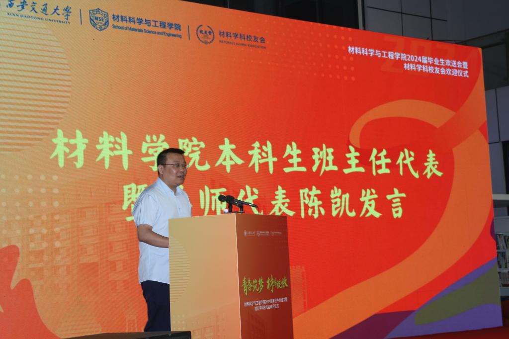 本科生班主任代表暨导师代表陈凯以美国物理学家理查德·费曼的名言“There’s plenty of room at the bottom”为寄语,送给即将走向各行各业工作岗位的同学们,希望大家关注基础问题,扎根基层工作,在人生的新征程中,以昂扬的奋斗姿态迎接新篇章,书写人生新辉煌。