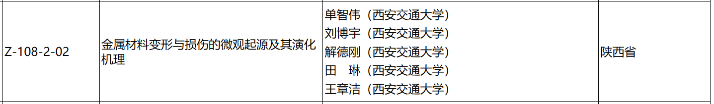 单智伟教授团队的“金属材料变形与损伤的微观起源及其演化机理”项目荣获国家自然科学二等奖。