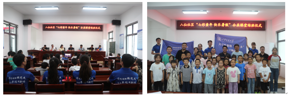 在总结交流仪式中,领导们就支教活动的课程设计、教学实践、学生学情以及支教团队的实践感悟和收获等方面与支教团成员们进行深入交流,气氛热烈。他们肯定了暑期支教活动的意义和支教团队现阶段取得的成效,同时也指出目前支教工作所存在的问题,并提出指导性建议。活动最后,由支教团成员为八仙镇学生发放奖品及交大文创并合影留念。