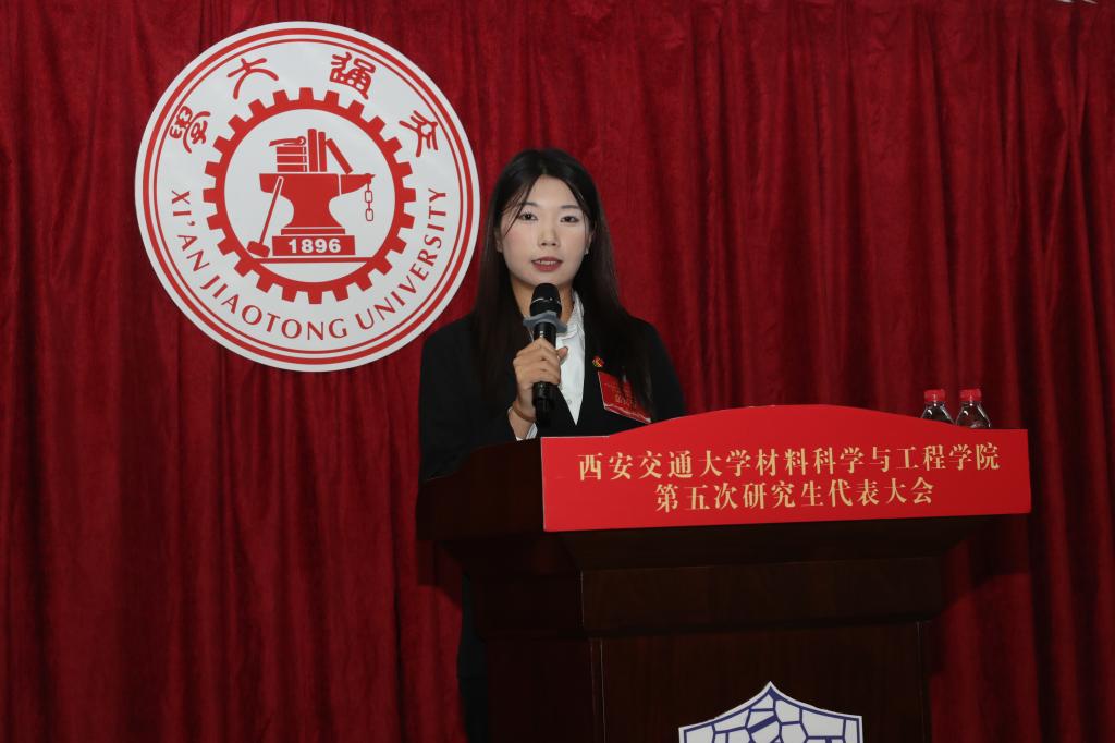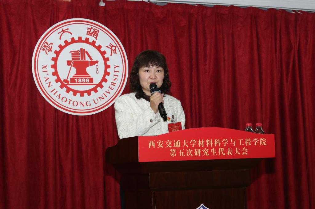 党委书记高宏在致辞中表示,本次研究生代表大会是学院凝心聚力开创研究生工作新局面的一次青年盛会,对学院进入高质量特色发展的新征程具有重要意义。过去的一年,学院在人才培养、学术科研、平台建设和文化建设等方面取得了可喜的成绩,每一项成果的背后离不开全院研究生的默默付出。同时她对同学们提出了三点希望:一是希望同学们争做西迁精神的新传人,抓住新时代新机遇,到祖国最需要的地方建功立业,在新征程上创造属于我们这代人的历史功绩;二是希望同学们胸怀国之大者,勇担历史使命,将坚持科技自立自强、实现中华民族伟大复兴作为自己的历史责任;三是希望各位研究生代表及研究生会成员发挥桥梁纽带作用,谨记自己作为一名“服务者”的身份,使研究生会等学生工作体现 牵手