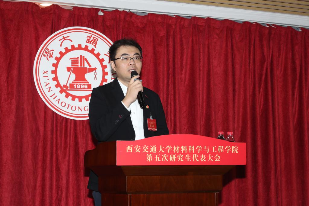 团委书记李博副教授代表学院团委向学院研究生会表达了衷心感谢。他希望新当选的各位研究生代表和主席团成员作为研究生代表要起到先锋模范作用,有大局意识,把家国情怀厚植于心;注重个人能力的提升,拥有更加优秀的综合素养;团结同学,凝聚力量,能够及时为同学们排忧解难,营造积极向上的学术氛围;成为连接老师和学生的桥梁,带领大家追求卓越,突破自我;在工作中有自己的创新和独到之处,能在新时期提出新办法、新措施,把 牵手