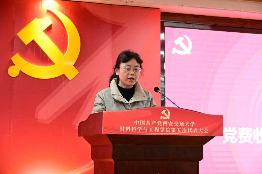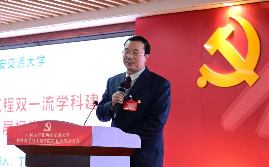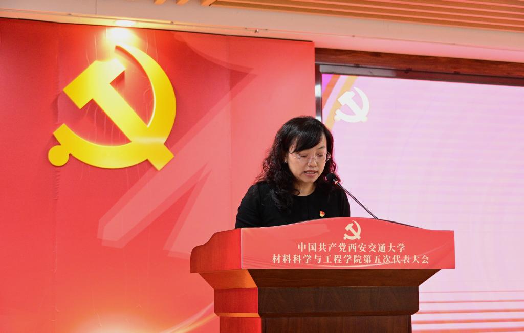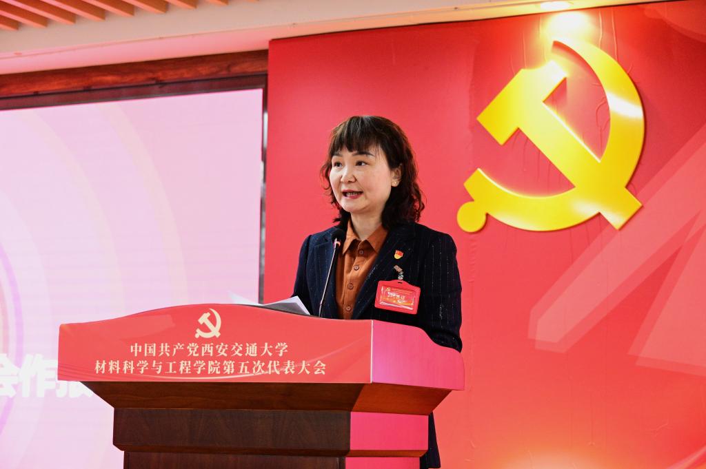 学院党委书记高宏代表学院第四届党委作题为《以世界一流材料学科建设为统领,凝心聚力,改革创新,开启高质量发展新征程》的报告,从五个方面全面总结回顾了学院第四次党代会以来取得的主要成绩和经验:一是坚持党的领导,贯彻落实决策部署;二是加强思想政治工作,构建思想文化建设新格局;三是加强基层组织建设,增强生机活力;四是推进综合改革,学科发展跃升新高度;五是推进全面从严治党,营造风清气正的政治生态。未来五年,学院党委将聚焦提升党建质量、加强顶层设计、坚持学科交叉、坚持内培外引、服务国家重大需求等重点任务目标,从党的领导更加坚强、学科优势更加凸显、人才培养模式更加优化、人才队伍支撑更加有力、原始创新动力更加强劲等方面出发,毫不动摇坚持和加强党的全面领导,传承弘扬西迁精神,立足新发展阶段、贯彻新发展理念、服务构建新发展格局,教育和引导学院师生胸怀“国之大者”,勇担国家使命,开启学院高质量发展新征程。