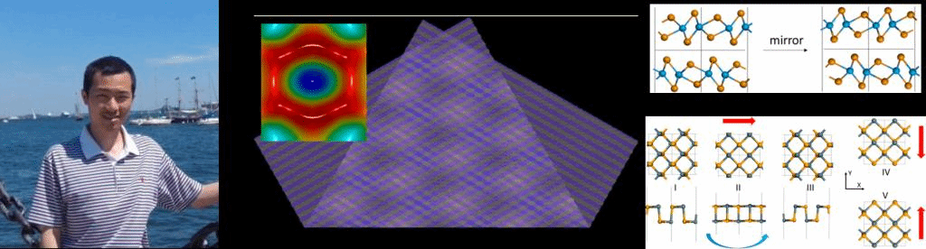 摘要:具有高迁移率的二维材料有望取代硅材料成为新一代电路基本材料,但要使其兼具信息非易失性记忆功能则需要加入铁性(铁磁,铁电, 铁弹),也可解决硅基内存进一步小型化后棘手的量子隧穿和散热问题。 目前的多数铁磁性二维材料居里温度难以达到室温,而二维材料的铁电性和铁弹性在之前鲜有相关研究。自2013年预测出第一个二维范德华铁电体以来,我们通过第一性原理计算已陆续设计出一系列二维铁电/铁弹/多铁体,并有部分得到实验证实,其中不少同时是高迁移率半导体,且在低维仍具有较高居里温度,因而有望绕开铁磁性二维材料面临的问题。相比传统铁电体,二维铁电体有望和半导体电路更好地结合。 二维版的各种多铁耦合,多铁隧穿结等器件也得到了预测和设计,其性能甚至有望超过三维的版本