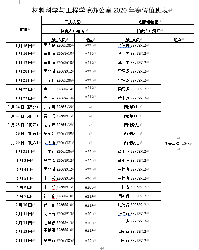 2、两地值班均需及时处理各类业务。两地联动期间,在兴庆校区值班,创新港如有紧急事务及时处理。