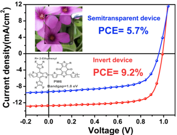 有机太阳能电池的能量转换效率主要有三个因素决定:开路电压(Voc)、短路电流(Jsc)、填充因子(FF)。其中,开路电压(Voc)由给体材料的最高占据轨道(HOMO)能级和受体材料的最低空轨道(LUMO)能级决定。氟原子的引进能在减小聚合物的LUMO和HOMO能级的同时对光学带隙只产生很小的影响。通常,含氟聚合物的本体异质结有机聚合物太阳能电池比无氟衍生物具有更高的开路电压和能量转换效率,但是,这种方法只能用在有合适位置放置氟原子的几种有限的受体单元。最近,侯剑辉研究员课题组成功的在D-A聚合物中,把氟原子放在受体单元苯并二噻吩(DBT)的共轭侧链上,研究发现:当在DBT的共轭侧链上放置两个氟原子,能量转换效率就会增加到原来的30%以上。把氟取代基(BDT-F)作为宽带隙聚合物的主链可以进一步提高光伏性能。马伟课题组从材料结晶性能及相分离的角度解释了这种新材料获得高能量转化效率的内在原因。同时,该研究合成的聚合物PM6在半透明器件中也表现出优良的性能。因此,这种材料是一种多用途的有机光伏材料。