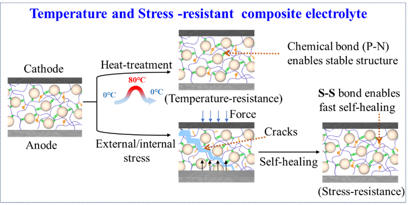 温度/应力自适应固态电解质作用机理示意图