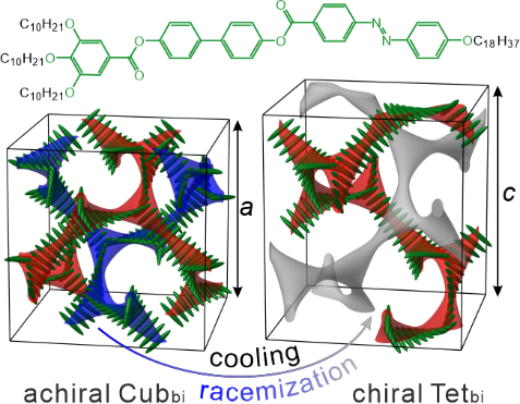 近日,该研究成果以《超分子内消旋新模式:左右旋共存的镜面对称性破缺产生四方网络液晶结构》(Supramolecular meso-Trick: Ambidextrous Mirror Symmetry Breaking in a Liquid Crystalline Network with Tetragonal Symmetry)为题发表在国际化学领域旗舰期刊《美国化学学会会刊》(J. Am. Chem. Soc)上。该论文第一作者为牵手
