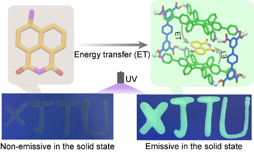 光捕获是光反应中荧光分子吸收光能并传递到反应中心的过程,是光合作用得以高效进行的基础。因此,发展人工的光捕获体系不仅有利于我们深入了解光合作用的机理,而且在光电转换以及化学传感等领域有着广泛的应用前景。然而目前的绝大部分的人工光捕获体系都集中于溶液态的研究,固态光捕获系统的构建还是一个重要挑战。